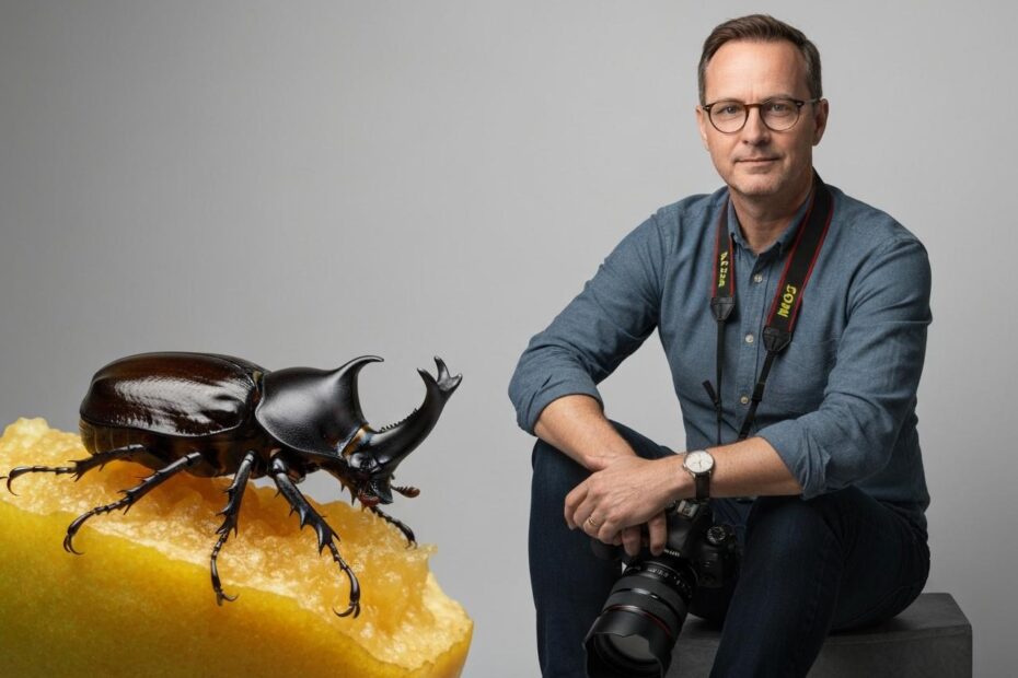 Técnicas práticas para fotografar besouros rinoceronte em frutas maduras — equipamentos, composição e ética de campo para fotos macro impressionantes.
